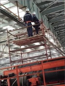 造船事业三部制造部装焊车间夜班多,照明依靠顶灯,顶灯净空高度约30米,由于没有维修平台,修理起来非常不易。近日,保障部接到二十多盏顶灯的报修信息,决定在车间桥吊上搭架来维修。因生产繁忙,车间桥吊只能班后配合作业,为了不影响该车间的生产,保障部的同事们放弃了午休时间。据悉,针对顶灯维修施工困难这一老大难问题,电工班将策划制作一种可拆卸铝合金维修平台工装代替临时搭载,以应对后续出现的故障问题,提高维修效率。