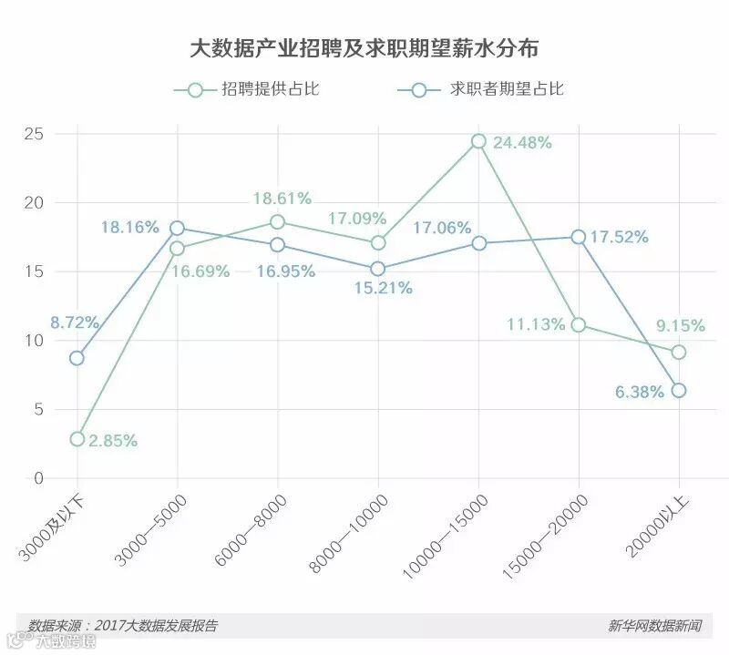 大数据行业人才成为近年求职市场的“香饽饽”,薪资水平也是水涨船高,招聘企业提供的薪资水平主要集中在6000元以上,而人才的稀缺也使得企业对于顶尖的大数据人才不惜一掷千金。