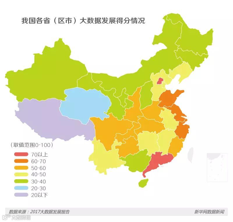 通过对我国各省(区市)大数据发展的政策环境、人才状况、投资热度等指标进行测评发现,北上广毫无悬念仍然领跑全国,而总体来看全国发展指数平均仅为47.15分,仍然处于起步阶段。