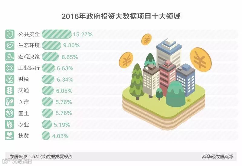 政府投资的大数据项目主要聚集在公共安全、生态环境、交通、医疗等民生领域。除此以外,大数据能够推动我国政府决策和经济运行更加精细、科学,宏观决策亦是政府投资的重点领域。