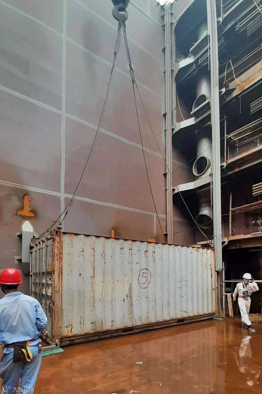 H5546船在第一阶段半船浮移前,完成了NO.6货仓试箱报验。这是文冲厂区首次在半船浮移前,完成前半船主体结构焊接、拆架并试箱工作。