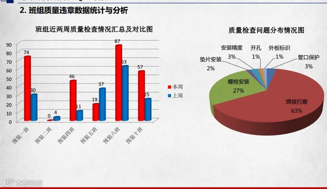 4、推行施工质量标准化,推行质量大数据管理,落实质量实名制,组织作业区内部技能比武,“让专业的人干专业的事”,产品质量明显提升。