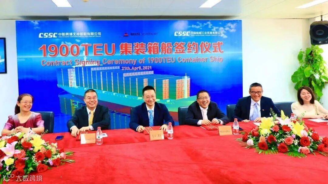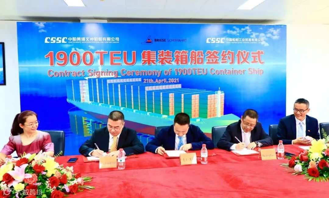 当日,中国船舶集团属下中船黄埔文冲船舶有限公司与中国船舶工业贸易有限公司作为联合卖方与德国 BRIESE公司正式签署了4艘船的建造合同。