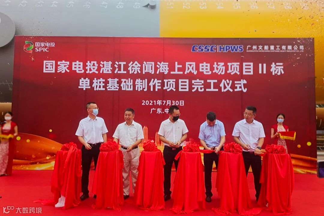 廖位达、刘旭东、王胜利、陈宏领、徐朝阳共同为徐闻单桩完工剪彩。