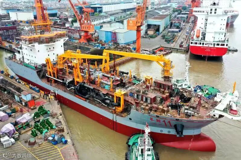2021年3月29日,公司为长江航道局建造的6000m³自航耙吸式挖泥船-2#船H5588在文冲厂区提前出坞,首次实现挖泥船出坞时完成锚链上船、上建外围壁完工并拆架等工作。