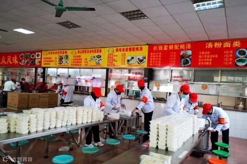 在饭堂帮忙分餐、派餐
