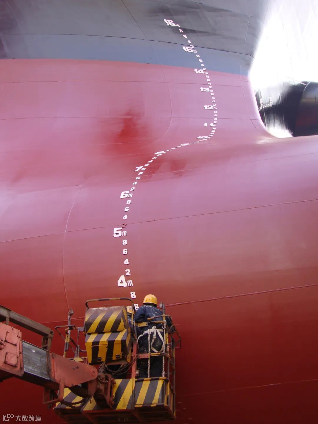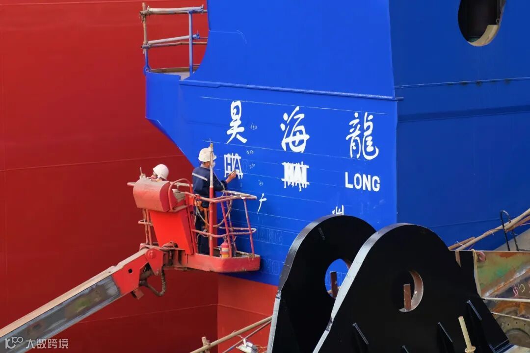 出坞前夕,涂装工人正在给7800kW绞吸挖泥船绘制船名-昊海龙。