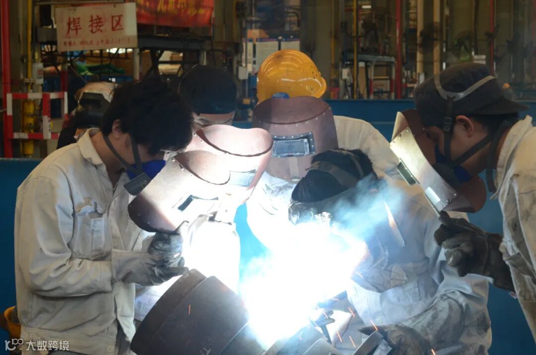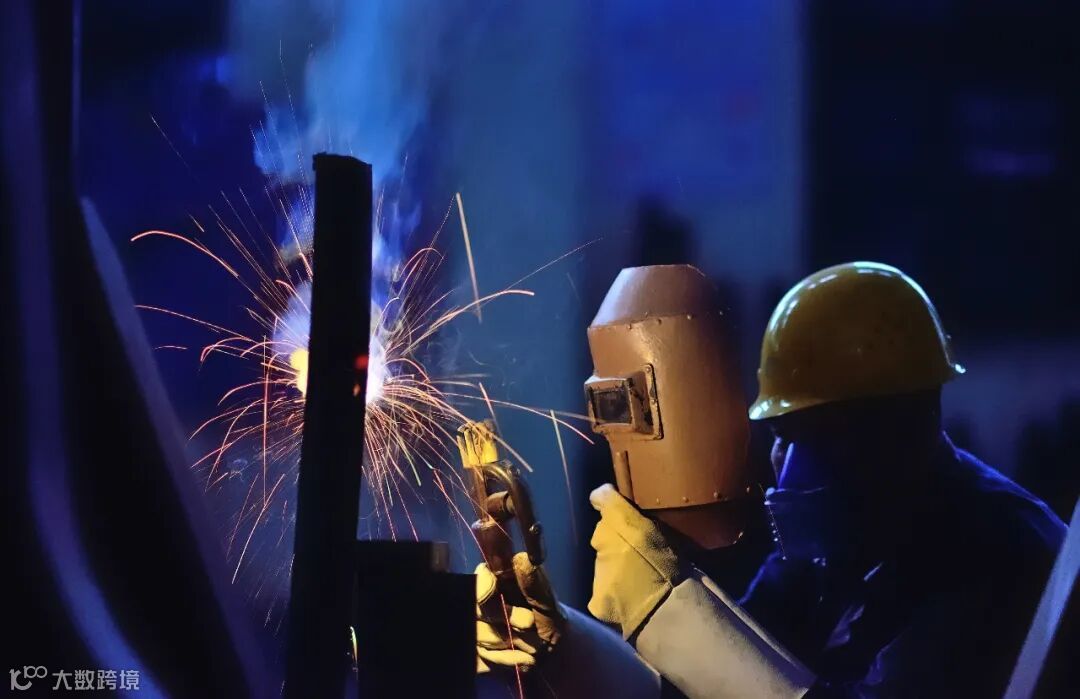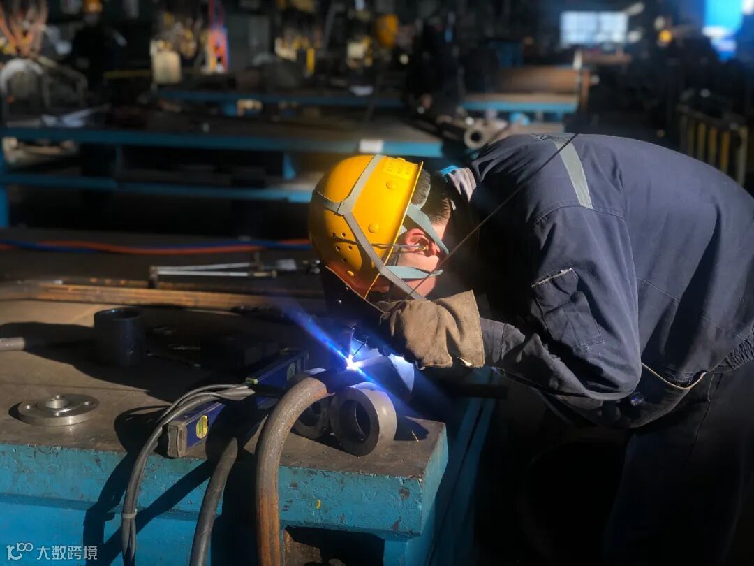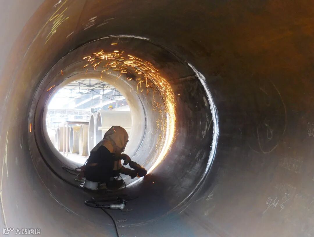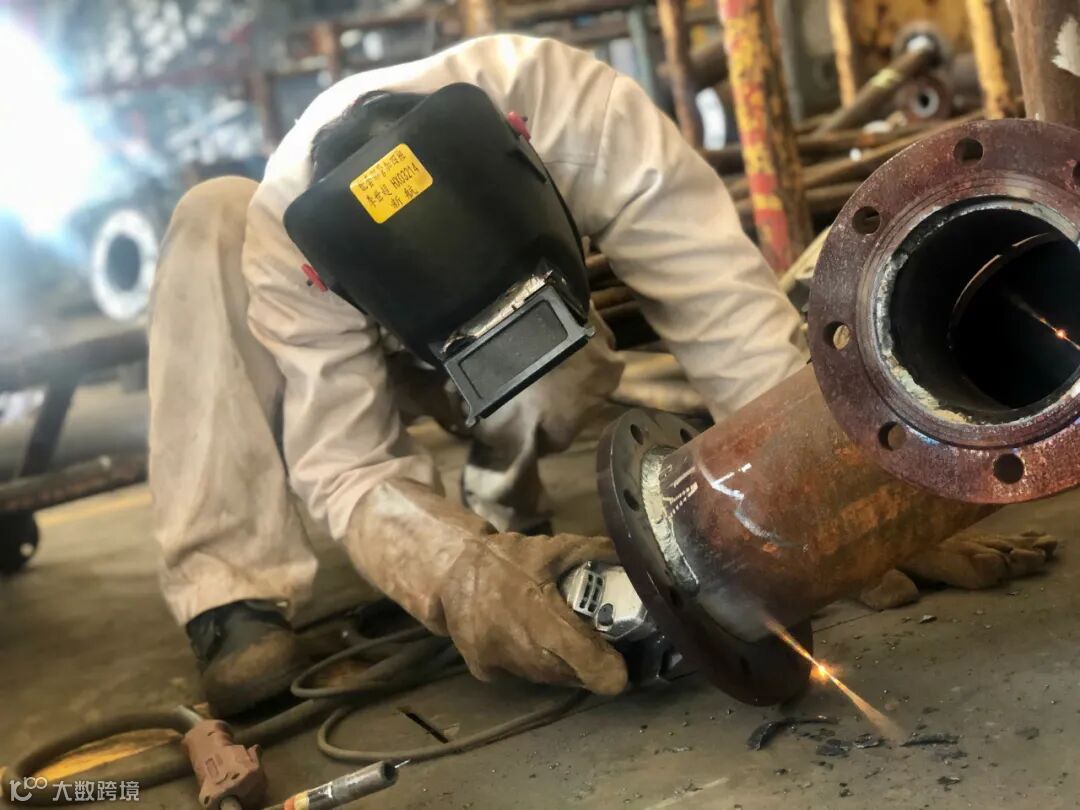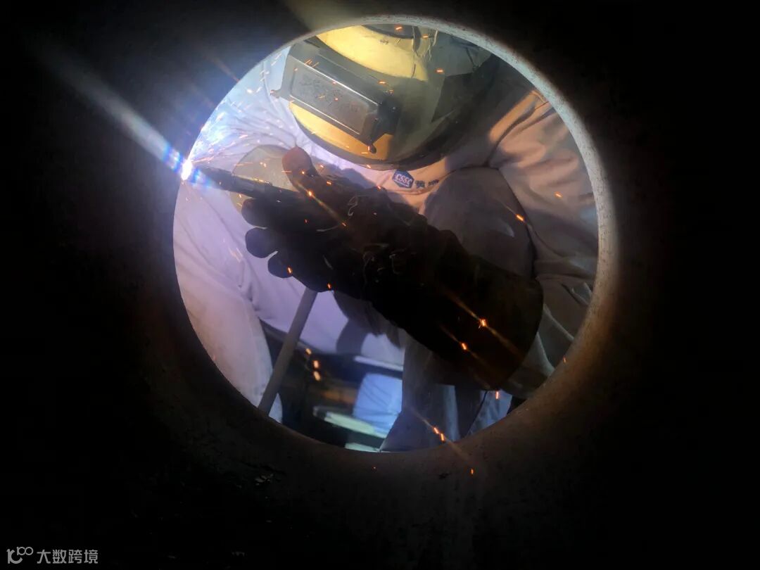 管加作业区的装配工人,随着手中焊枪的摆动,闪烁着耀眼的蓝光。