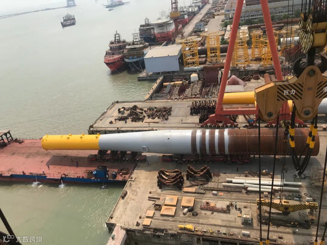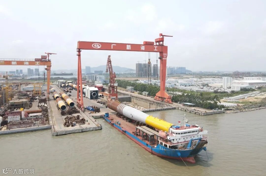 本次交付的单桩为该批次的23号桩,长98.3米,最大管径8.7米,重1500吨,是广东省本土企业为粤东地区首制的最重、直径最大的海上风电单桩。