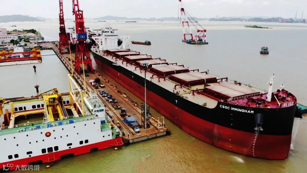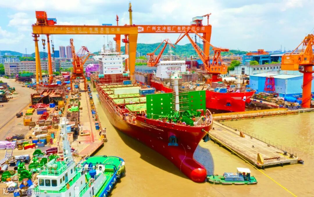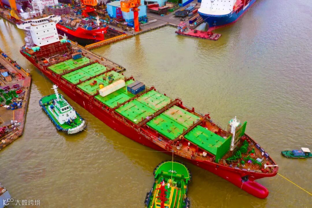 ▲ 黄埔文冲1080箱首制船出坞短视频