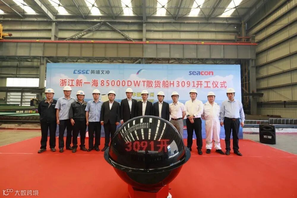 4月2日,公司建造的2038箱集装箱船10号船开工。4月5日,公司首艘自主研发的85000吨散货船开工。