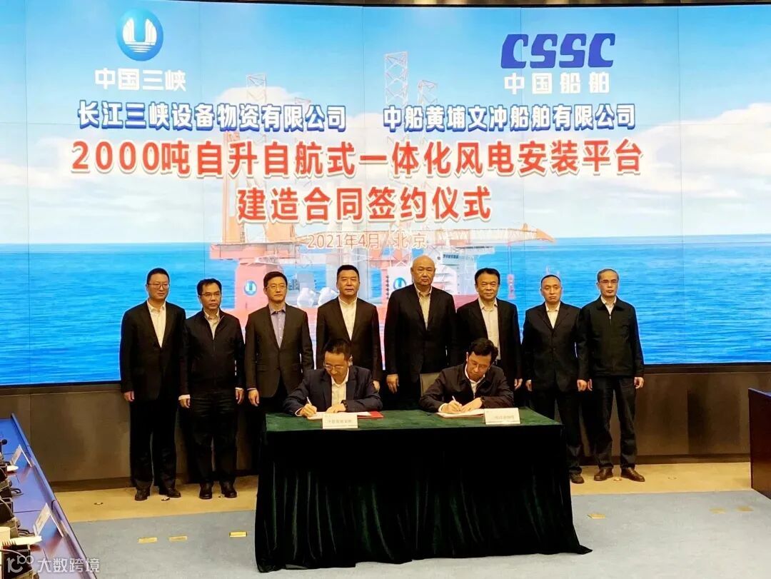 4月26日,公司与三峡物资公司签订一座2000吨自升自航式海上风电安装平台建造合同。