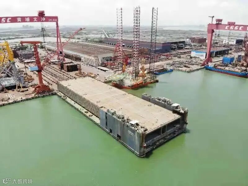 4月28日,公司为海南海事局建造的大型巡航救助船在长洲厂区上船台。4月18日,四桩腿平台以创纪录速度上船台。