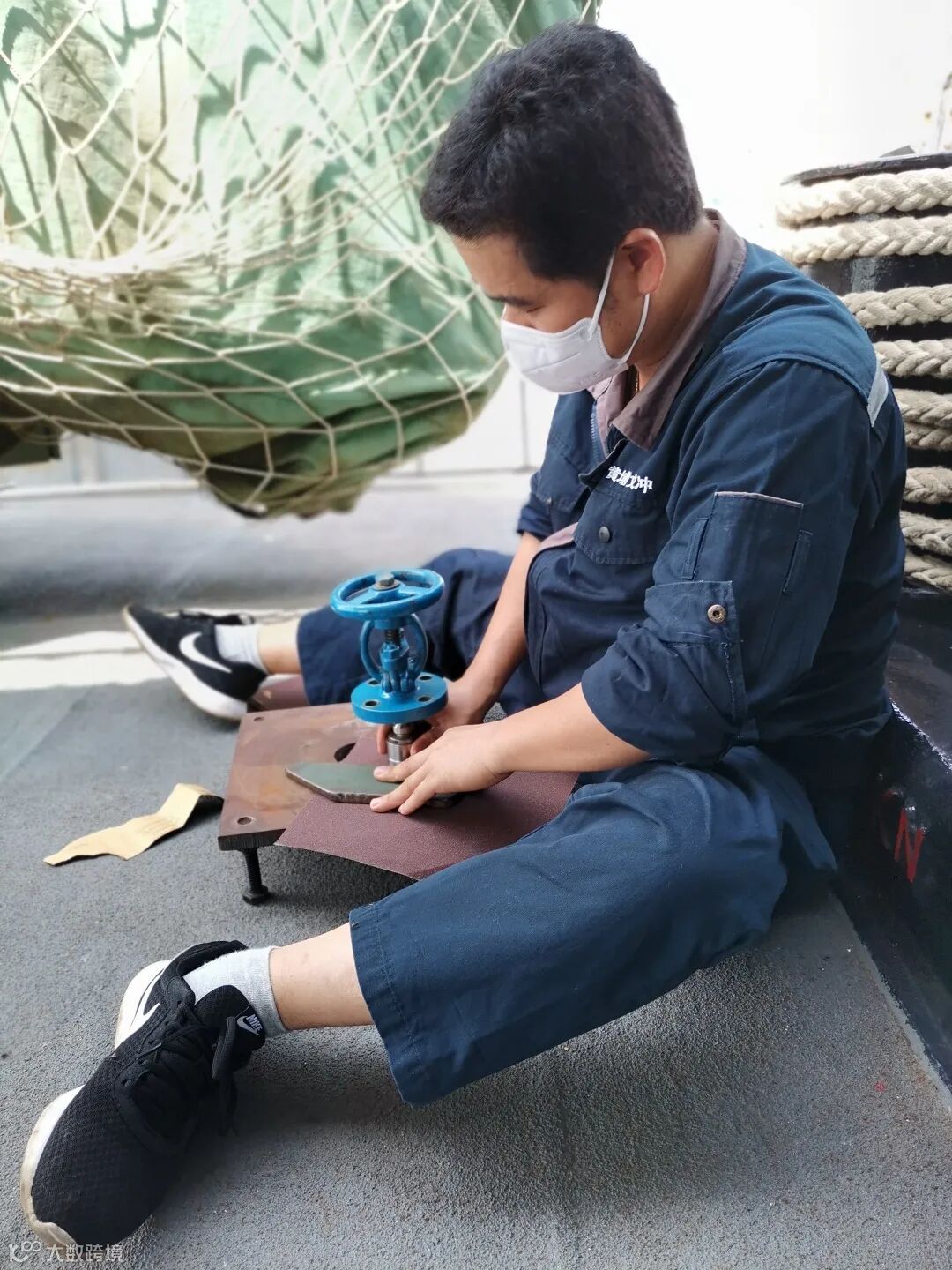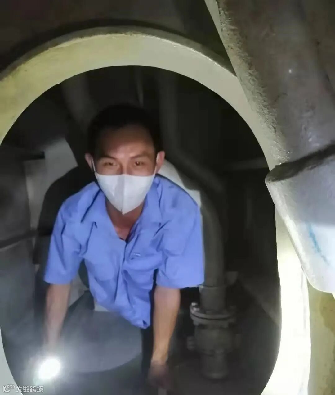 出于防疫安全考虑,在船上工作时他们不敢喝水、不敢进食,常常是结束了一天的工作返回公司宿舍后才开始吃饭。作业舱室闷热,汗水沿着额头流进眼里,他们被汗水辣得直眯眼,却只是抬起衣角擦了一下,便继续专注于眼前的工作。