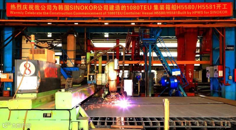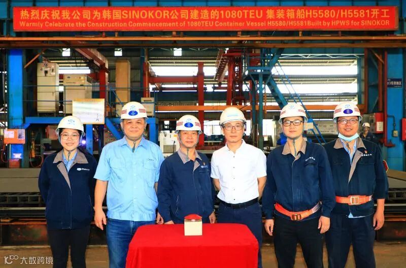 10月15日,中国船舶集团属下黄埔文冲公司为韩国SINOKOR公司的1080TEU集装箱船H5580/H5581在文冲厂区举行简单而隆重的开工仪式。