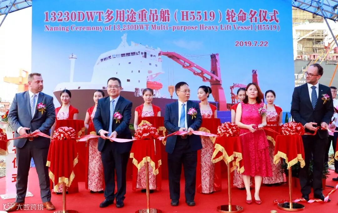 7月22日,公司为中国船舶(香港)航运租赁有限公司建造的13230吨重吊3#船(H5519)“Zea Future”在公司文冲厂区顺利命名并签字交船。H5519船命名人张丽萍、中国船舶(香港)航运租赁有限公司总经理胡凯、Zeamarine公司董事总经理Frank Fischer、黄埔文冲公司总经理向辉明、副总经理李晞以及Zeamarine公司、Hammonia公司、PD公司、BRS公司、DNV-GL船级社等单位领导和来宾共同出席了仪式。