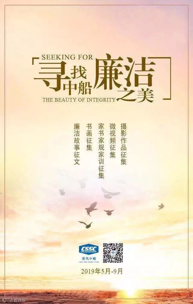 2019年5月至8月,中船集团纪检监察组组织开展了以“寻找中船廉洁之美”为主题的廉洁文化作品征集活动,得到了广大干部职工的积极响应与大力支持。不到三个月的时间,我们收到了大量的征文、家书、书画、视频、摄影等廉洁文化作品。经过成员单位初评、地区公司复评后,纪检监察组选取了362件作品进入最终评选。最终评选将采取微信投票和专家评审相结合的方式,目前已正式开启投票通道,让我们一起选出“中船廉洁之美”吧!
