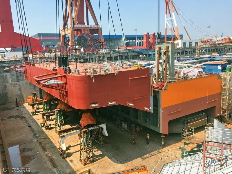 17天完成5台发电机报验,出坞76天实现倾斜试验,出坞79天实现站桩试验,出坞90天实现试航,开工至交船13个月。