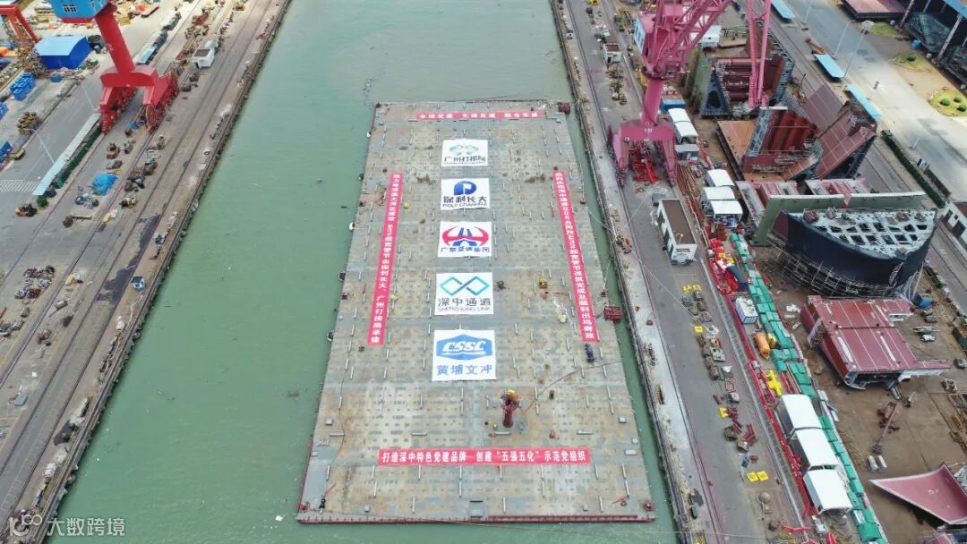 ▲ 2750箱集装箱船H5544与深中通道E32管节相继出坞