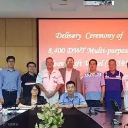 5月8日,公司为中国船舶(香港)航运租赁有限公司建造的“8400DWT多用途重吊船首制船正式交付!
