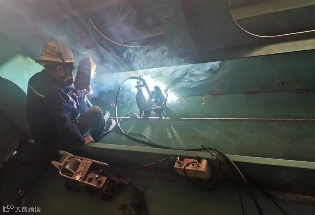 他,第一次来龙穴厂区拼装移动小车,为深中通道E8管节出运做准备工作。