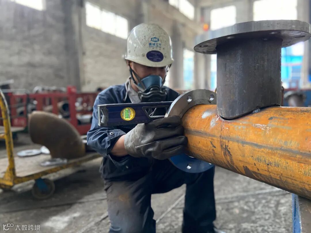H5552下水前,前侧推格栅锌块安装,他在这条船上持续工作了3个月。