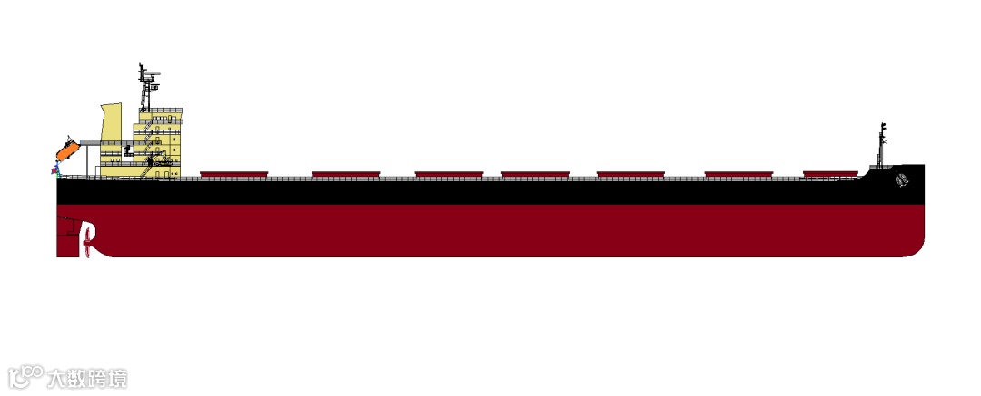 该船货舱舱容为106000m3,指标优于市场同载重量船舶。兼顾快速性的同时将货舱舱容做到极致,同等吃水条件下可以装更多的粮作物。据悉,该船适用于装载散货,可运货物包括煤、矿石、谷物、水泥等。