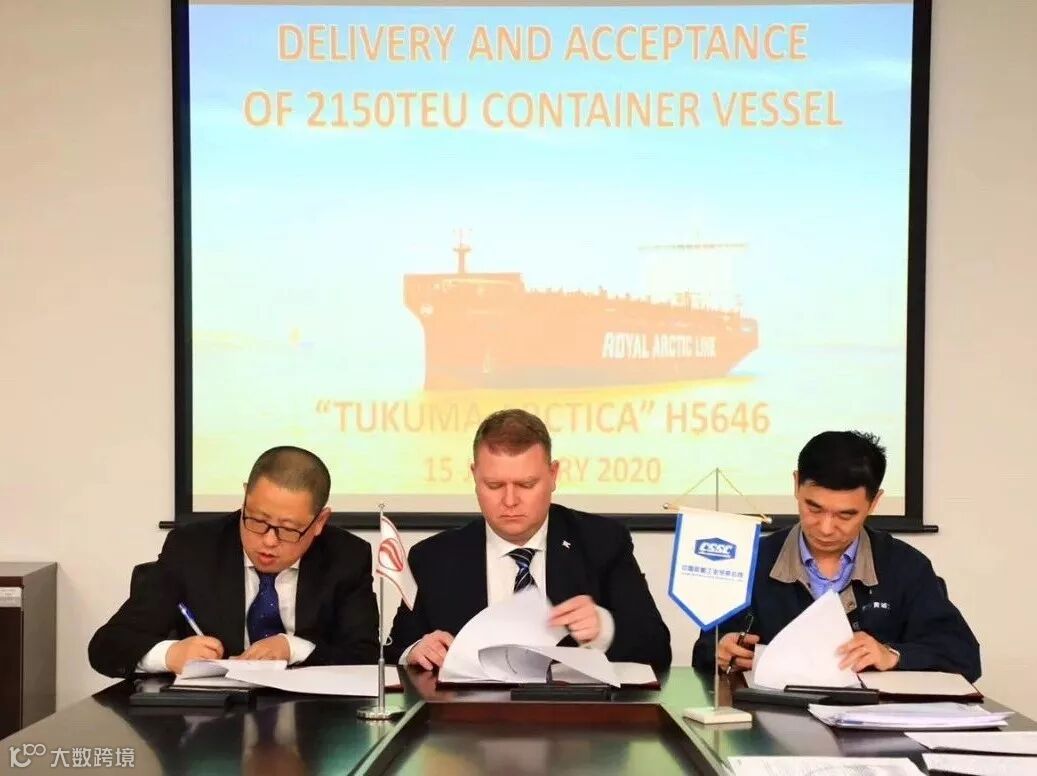 2020年1月15日,为格陵兰岛 ROYAL ARCTIC LINE A/S公司建造的2150EU冰级集装箱船“TUKUMA ARCTICA”交付(H5646)在我司文冲厂区顺利交付。这是公司本年度交付的第一艘船舶,打响了我司交船开门红第一炮!