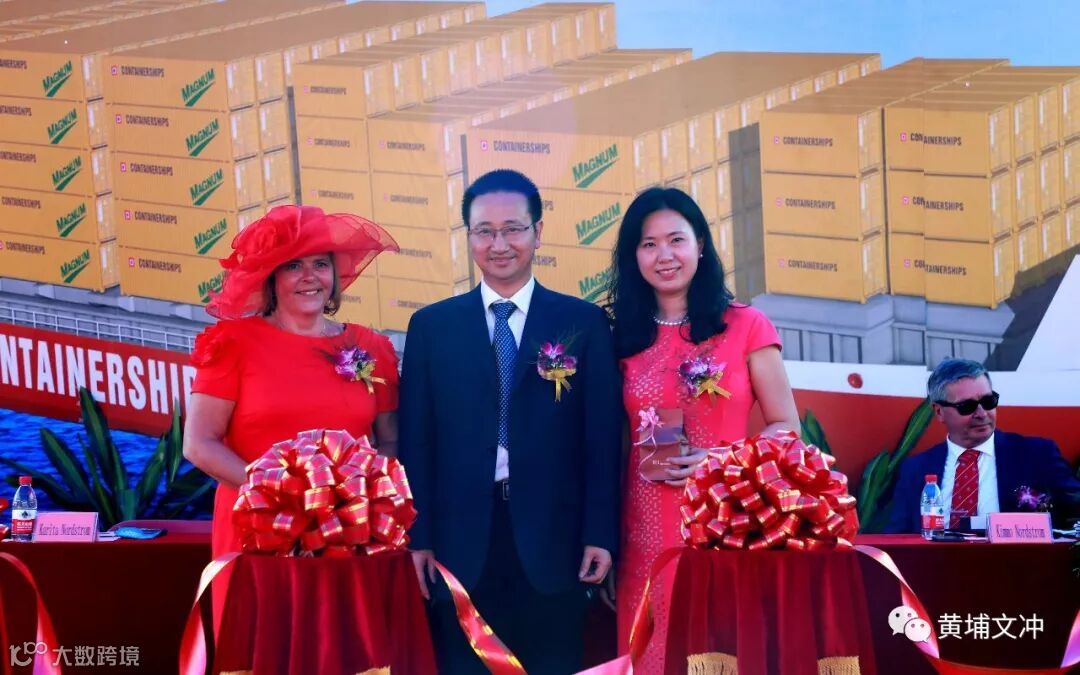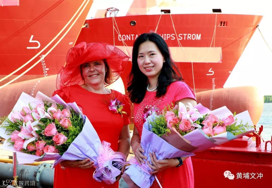 当日,H5510轮教母诺德施特姆女士、H5511轮教母范颖如女士、芬兰 Containerships公司董事会主席诺德施特姆、德国 Nordic Hamburg 公司董事总经理蓬塔、中国船舶(香港)航运租赁有限公司董事长杨力、中船黄埔文冲船舶有限公司总经理向辉明、副总经理李晞以及芬兰 Containerships公司、德国 Nordic Hamburg 公司、中国船舶(香港)航运租赁有限公司、ABS美国船级社、WinGD公司、中银香港公司、汉堡港、芬兰商务处、中信保、驻厂监造组等单位领导和来宾共70多人参加了仪式。