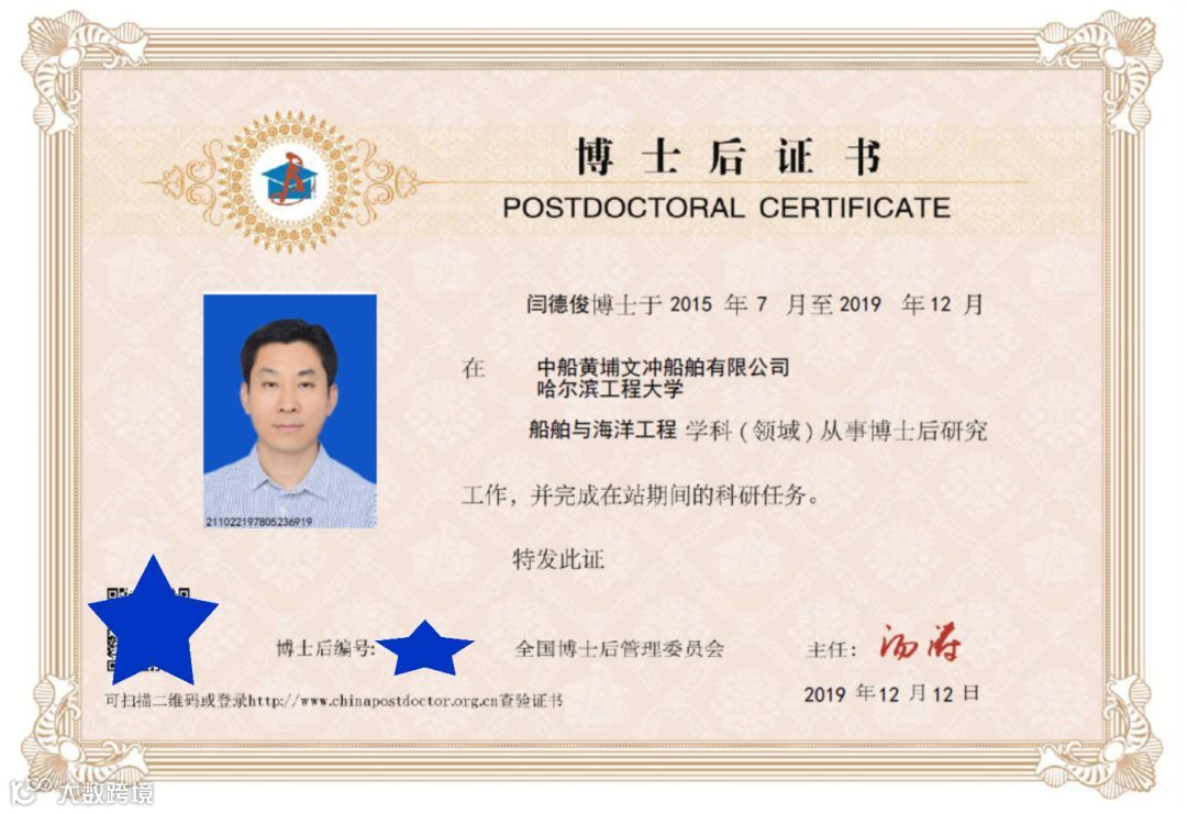 2019年12月,经国家博士后管理委员会审批,我司闫德俊博士正式出站了。