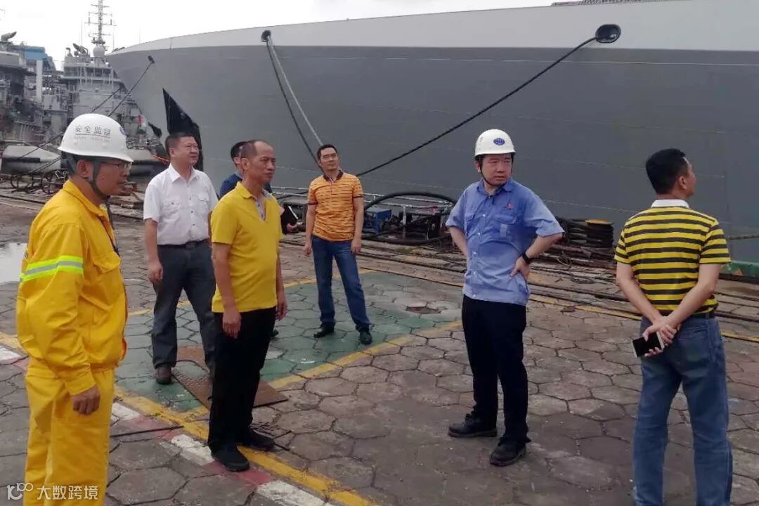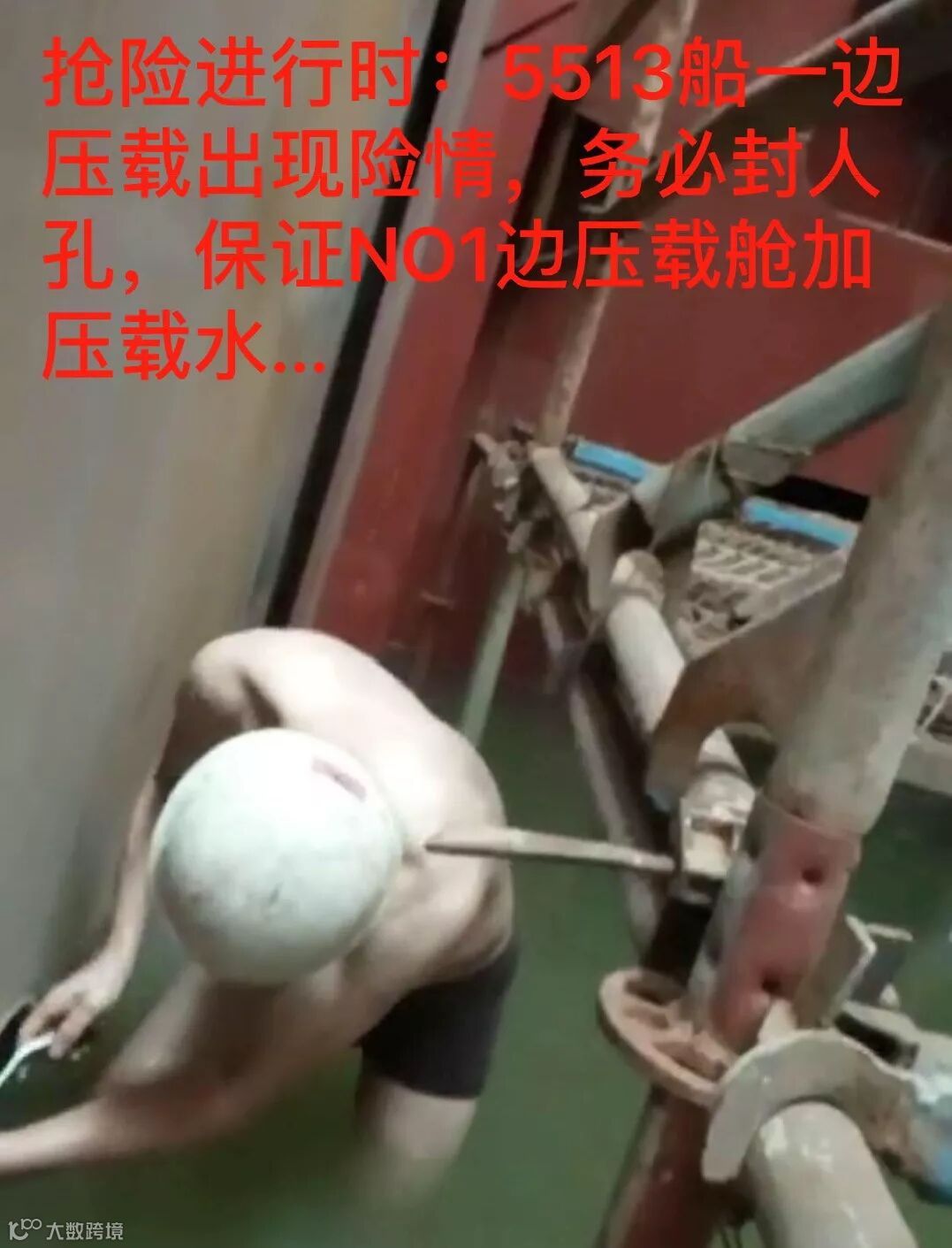 ▲文冲大坞进水后,为了加压载水,搭涂部同事赤膊跳入江水中,封闭舱室的人孔盖。
