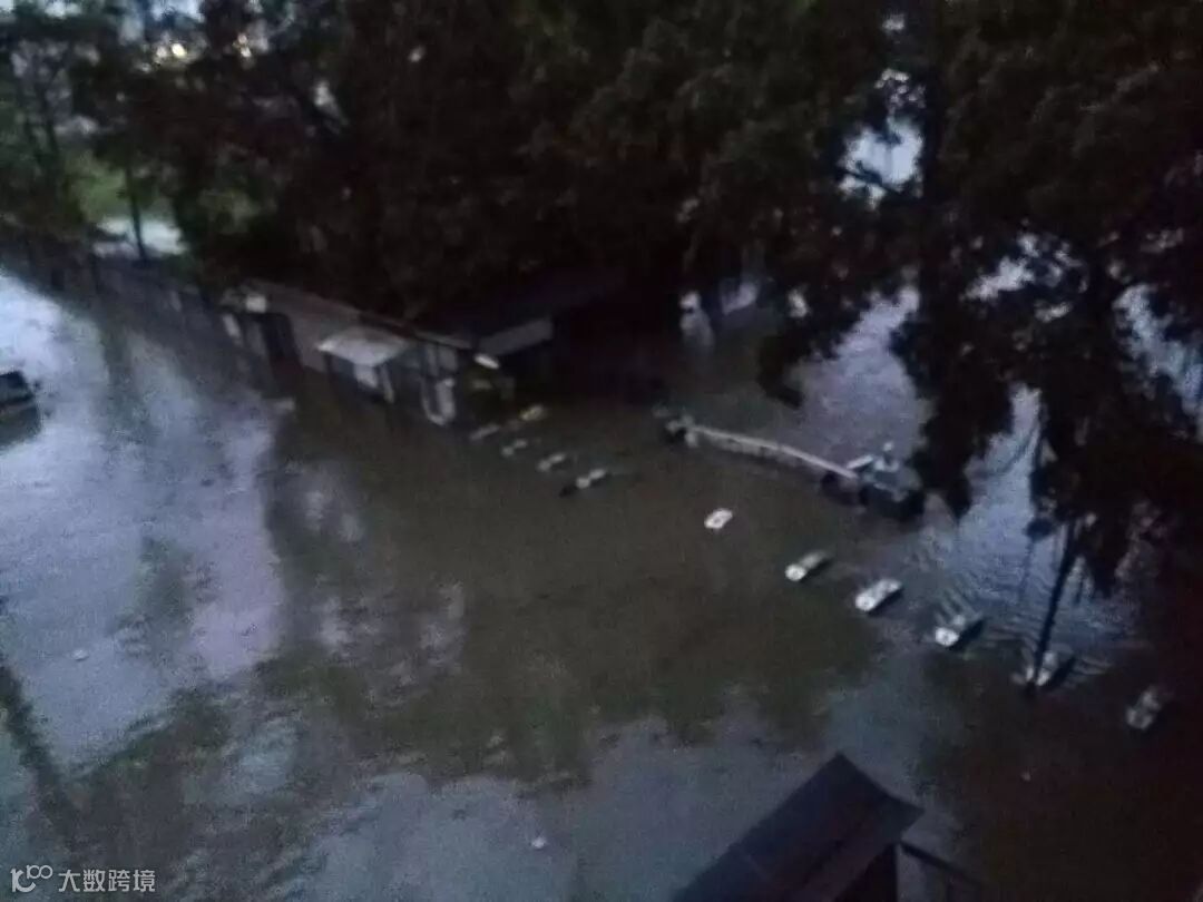 ▲16日下午6点,长洲厂区主干道已经被水淹没。