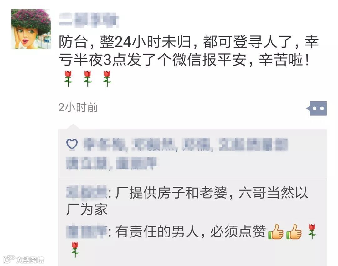 ▲有同事牵挂在公司防台的爱人,担心的彻夜未眠。