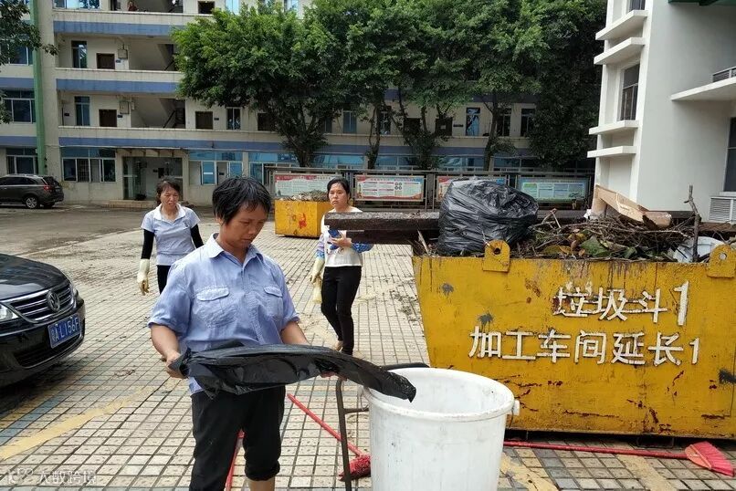 ▲文船生产保障部同事四处“救急“,在水中淌了万步。