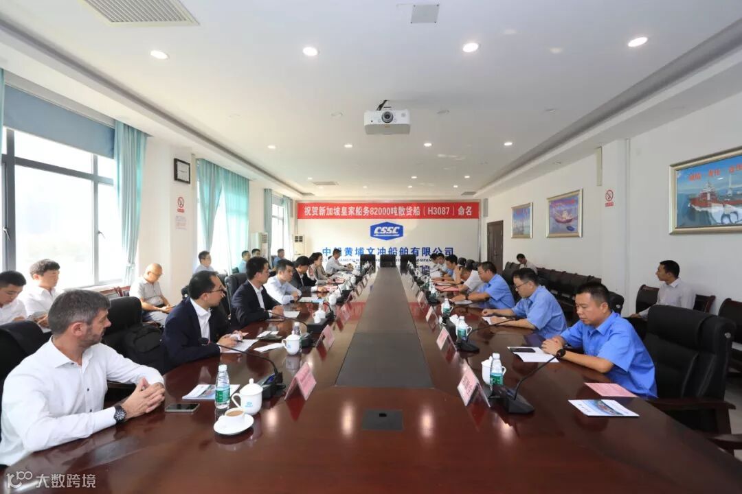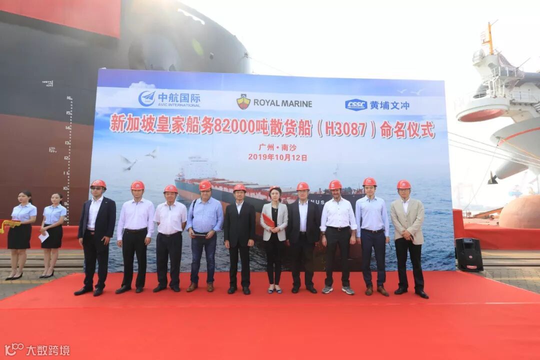 10月12日,公司为新加坡皇家船务控股有限公司建造的82000吨散货船H3087在龙穴厂区命名、离厂。中航国际租赁有限公司、新加坡皇家船务、黄埔文冲、上海船舶研究设计院、LR船级社等单位代表出席命名仪式。