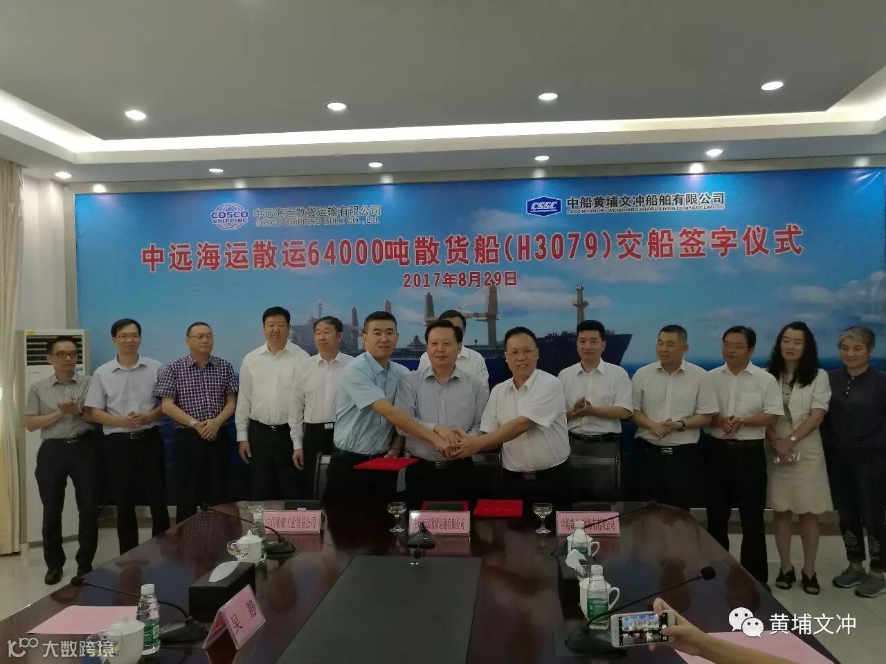 8月29日,该船在黄埔文冲龙穴厂区胜利交付。中远海运散运、中远散货运输有限公司、中远国际船舶贸易(北京)有限公司、天津中散国际贸易有限公司、香港海事处、中国船级社广州分社、中国船舶工业贸易公司(简称“中船贸”)、黄埔文冲等多方代表出席交船仪式。