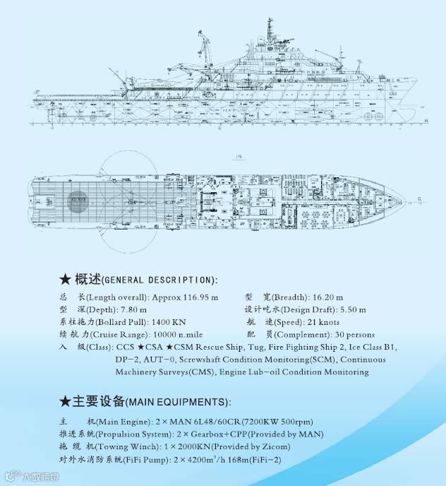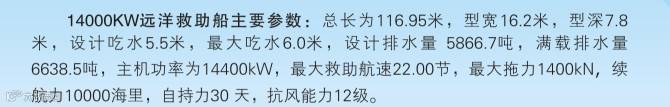 公司建造的14000千瓦、8000千瓦、12000千瓦系列大功率海洋救助船,在承担国家重大海上值班,航天发射保障和“急难险重”的海上救助任务中,发挥了重大作用。