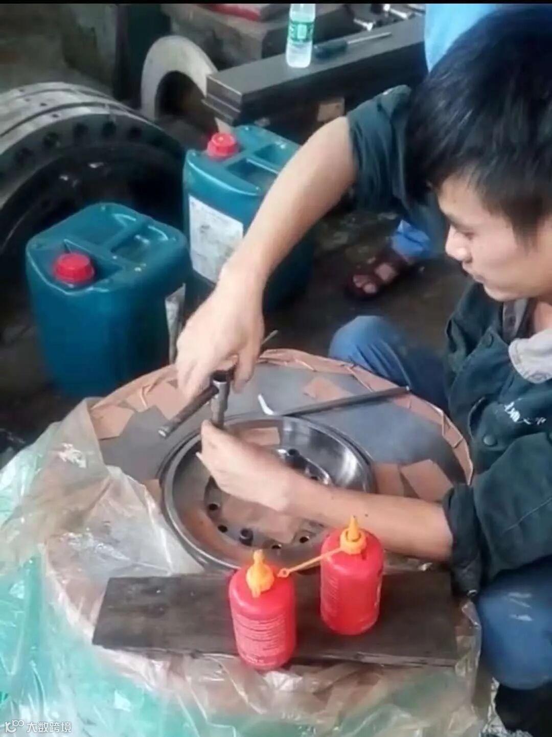 该船是1100TEU集装箱船的最后一条,在尾轴安装时突然发现轴头螺牙不够长。在增长过程中,由于国外服务工程师操作不当,攻牙时将丝攻工具断在里面,此时,若等备件却严重影响施工进度。