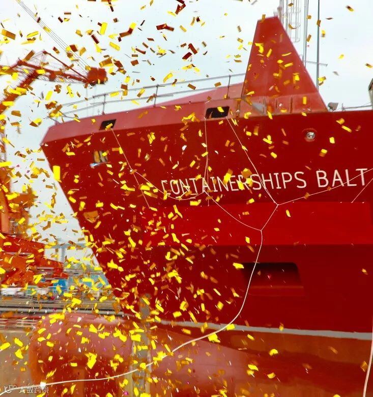 当天,两船教母柳华女士、拉克森宁女士,芬兰 Containerships公司董事会主席诺德施特姆,德国 Nordic Hamburg 公司董事长蓬塔,以及芬兰 Containerships公司、德国 Nordic Hamburg 公司、中国船舶(香港)航运租赁有限公司、ABS美国船级社、德国驻广州领事馆、广东芬兰商会、汉堡港、TGE公司、WinGD公司等各方嘉宾60多人参加活动。两名美丽的教母向新船行掷瓶礼,将两船命名为“Containerships Finn”(芬兰人号)和“Containerships Balt”(波罗的海号)。