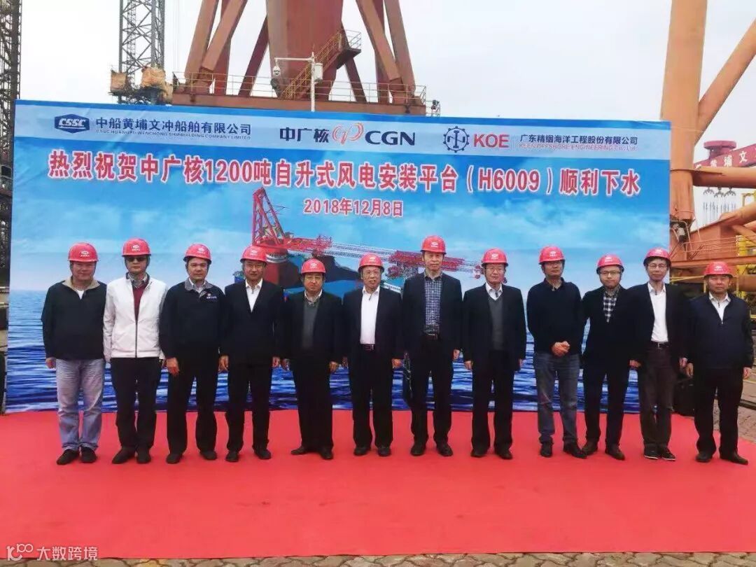 2018年12月8日,中船集团旗下黄埔文冲公司为广东精铟海洋工程股份有限公司建造的中广核1200吨自升式风电安装平台(H6009)在其龙穴厂区顺利下水。