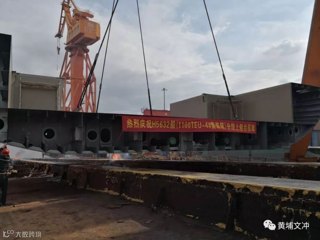 公司为美国tropical shipping 公司建造的1100TEU集装箱船4号船(H5632)上船台!