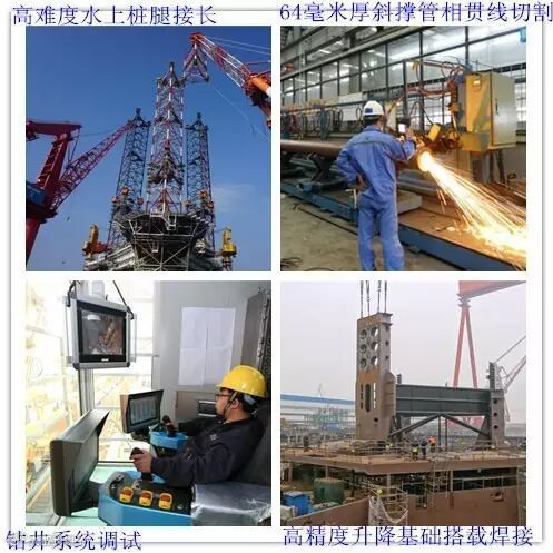 第一次完成悬臂梁、升降基础、桩腿超高强钢的焊接制作,尤其桩腿64mm厚斜撑管相贯线切割、焊接属世界首例。