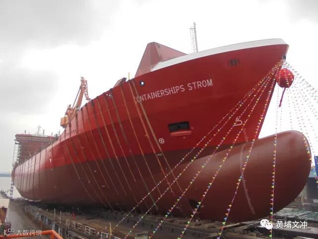 1400TEU DF项目驻厂船东监造组以及文船公司的领导和嘉宾参加了本次下水仪式,船东驻厂监造经理Joergen Leif Olsen先生对本次下水进行了打香槟活动,伴随着船舶鸣笛声和隆隆的鞭炮声,本次船舶下水仪式圆满完成,同时也标志着1400TEU系列船的生产建造步入新高潮。