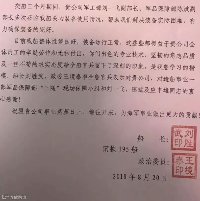 我司参与徐州舰随行保障的人员,最长的出差记录是189天,李伟同志这是破纪录了!