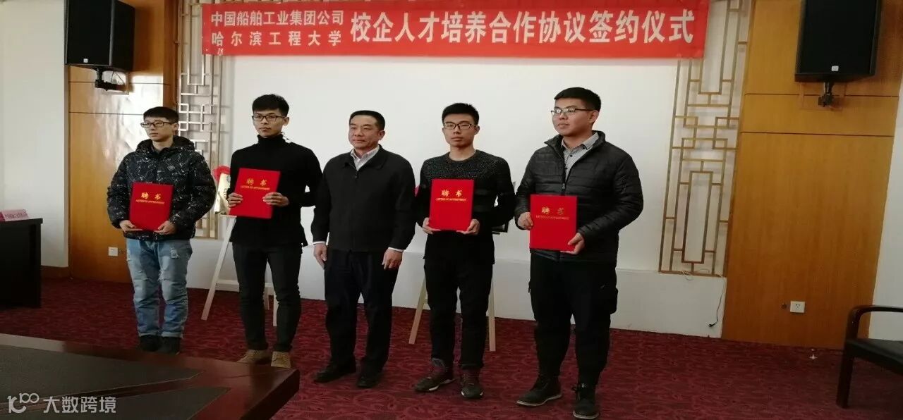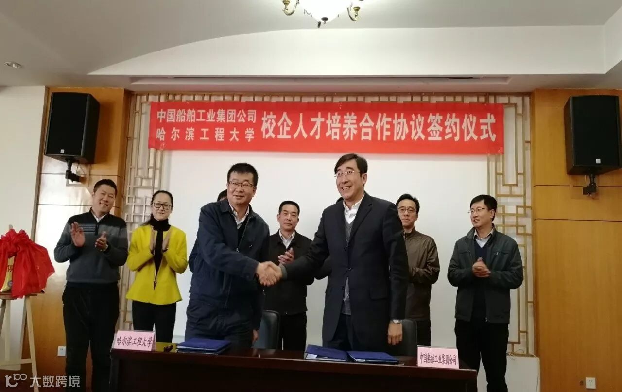 2017年12月8日,由中国船舶工业集团与哈尔滨工程大学共同举办的校企人才培养合作协议签约仪式在哈尔滨工程大学主楼顺利召开。哈尔滨工程大学党委副书记夏桂华、党委学生工作部部长吕开东、副部长兼就业指导中心主任徐宝贵,集团公司人力资源部副主任李矗、副处长余春江,公司党委副书记陈飞、组织人事部部长田勇及哈尔滨工程大学各学院党委书记出席了签约仪式。仪式由夏桂华副书记主持。