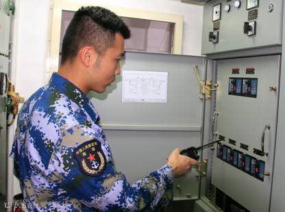 随航保障面临最大的困难是作业环境和人员物资的限制,李伟洪、蔡鸿歆等保障人员经常要在狭窄的舱室长时间作业。有时遇到风浪暗涌,舰船摇摆不定,或是半夜凌晨发生问题,保障人员都不畏困难,第一时间全力以赴做好保障工作,为全舰官兵解决燃眉之急。