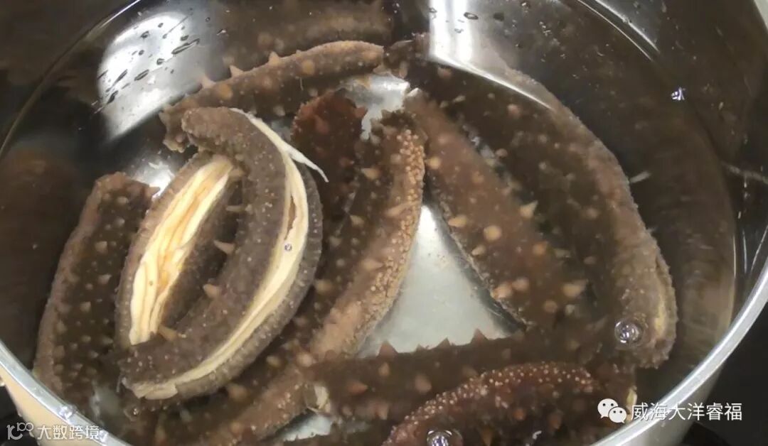 当海参体内的盐分与水中的盐分浓度相近时,海参就不会再继续吸水涨大。所以,发海参时需要多次换水,并且水温要一直保持在5度左右,才能达到最佳的泡发效果。