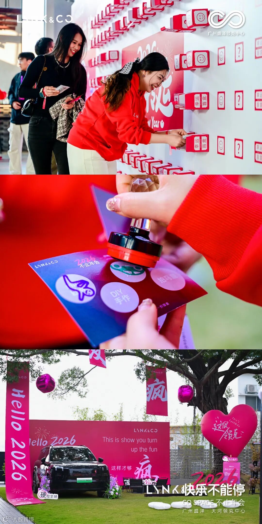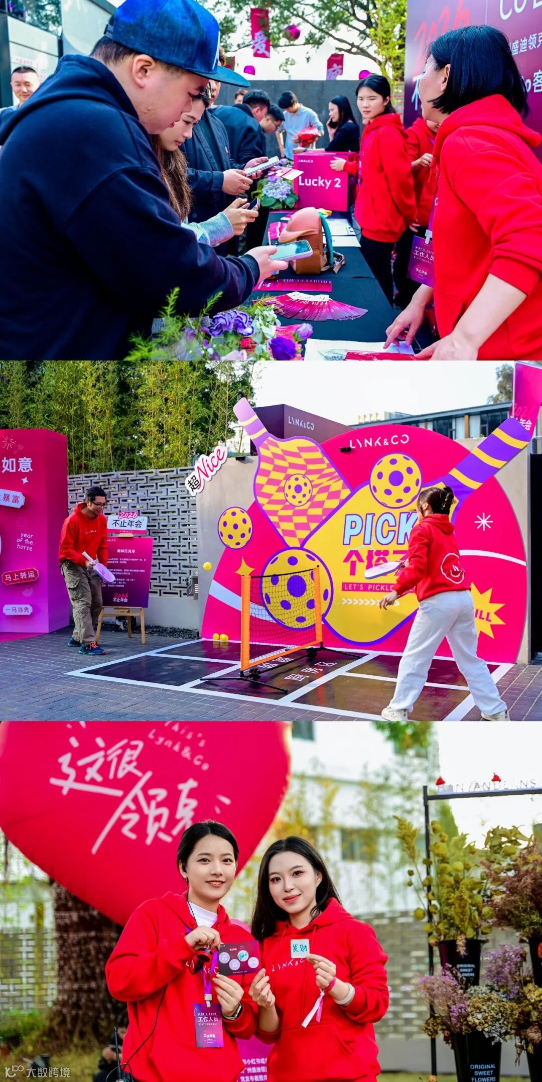活动自午后14时正式启幕,领克车辆整齐列队,在工作人员的统筹下组成亮眼车阵。阳光下,车身线条与品牌标识交相辉映,专业摄影团队捕捉下这一震撼画面,为年会留下首张“全家福”。