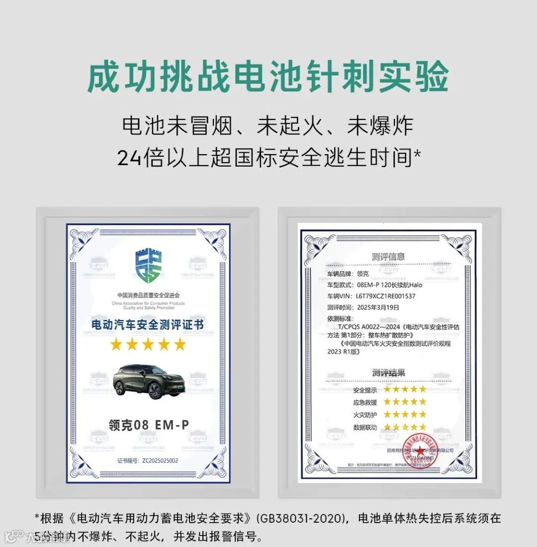 领克08 EM-P丨成功挑战电池针刺试验!获五星安全认证