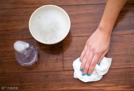 将 30ml 醋、20g 小苏打和 1L 水均匀混合,然后可加入少量洗洁精,然后用混合好的溶液擦洗地板,不仅能轻松除尘,还能有效去油污。